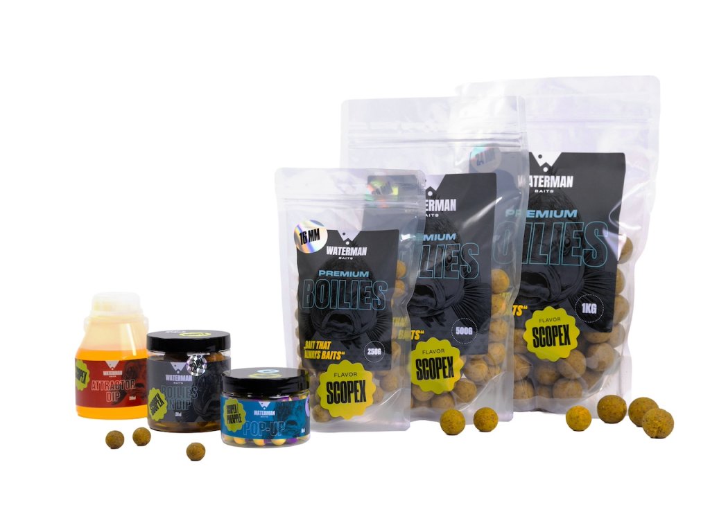 Sladký Scopex profil je velmi účinný zejména v chladnější vodě a na revírech s vyšším rybářským tlakem, kde dokáže kapry zaujmout svou přirozenou, neagresivní atraktivitou. Boilies lze používat samostatně nebo je kombinovat s dalšími produkty Waterman Baits, jako jsou Pop-Up nebo Boilies In Dip, pro vytvoření vyvážené a účinné krmné strategie.